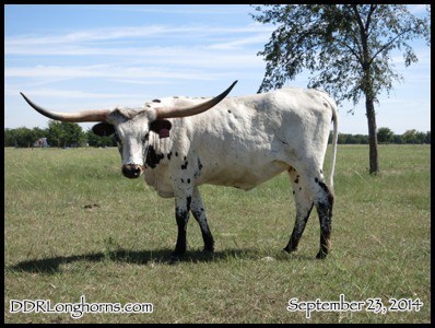 A beautiful daughter of JP Grand Marshall. Keeping her fantastic Fall 2013 heifer out of her. She has a DDR Rio Ranger bull calf (1/21/15) at side.