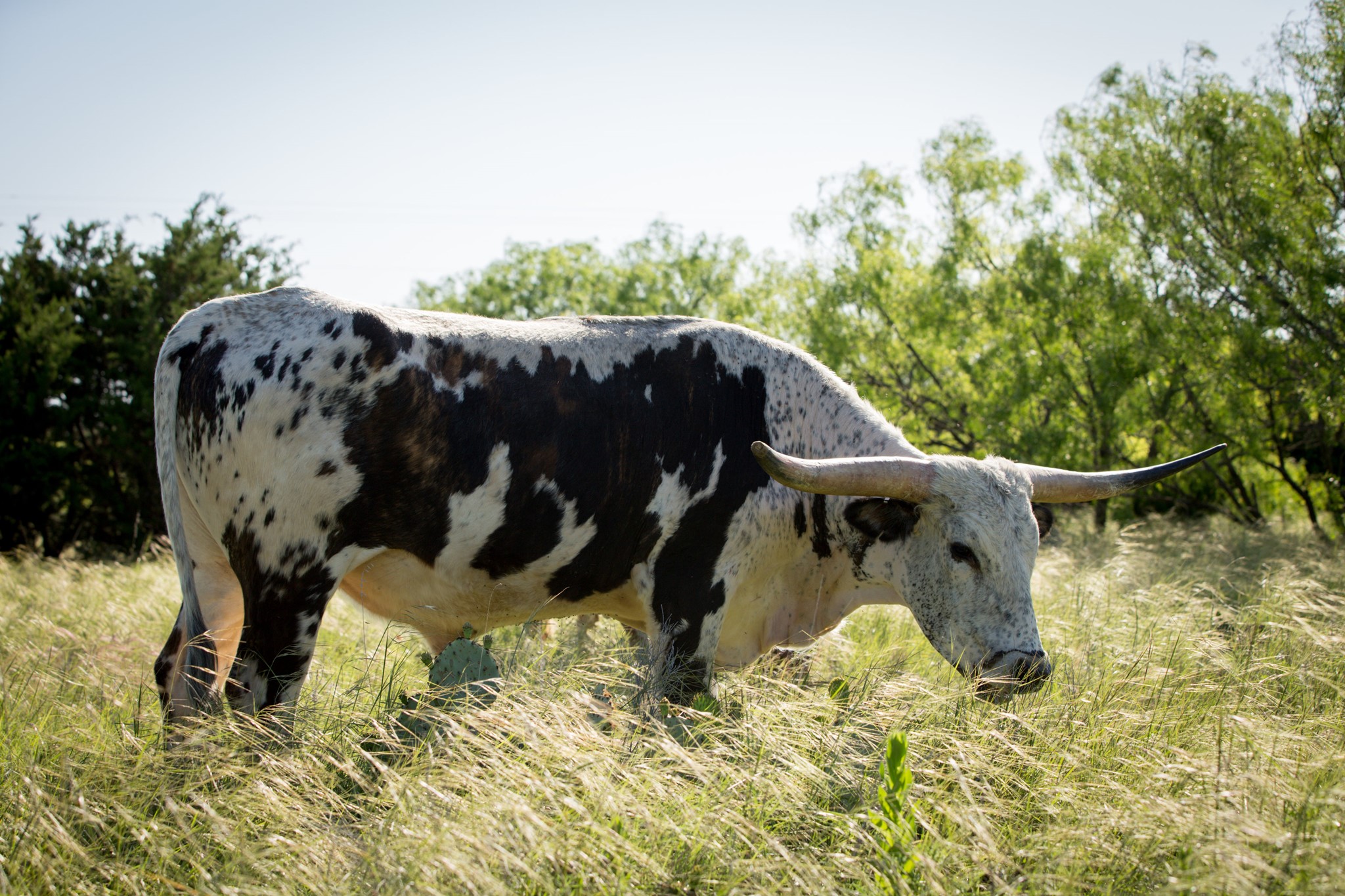 This is a beautifully colored trophy steer. Unfortunately, he broke 4-5" off his right horn shortly after we bought him, but his horns will still be large at maturity. He has the prettiest coat you will find on a steer. During the summer, he looks blue.